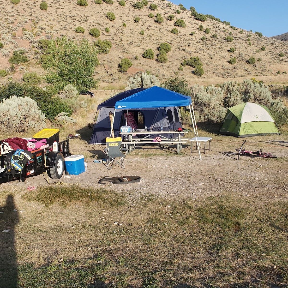 Show moreThe Green River Campground is located along the banks of the Green River at an elevation of 4,750 feet (1448 m). The highly eroded Split Mountain is visible to the north. The...